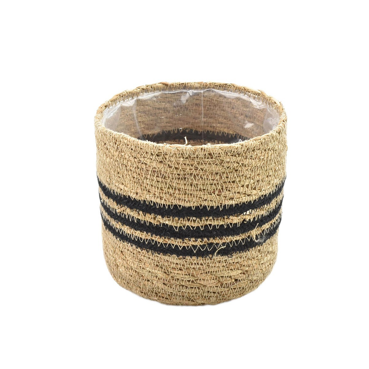 Straw Basket w/ Three Black Stripes