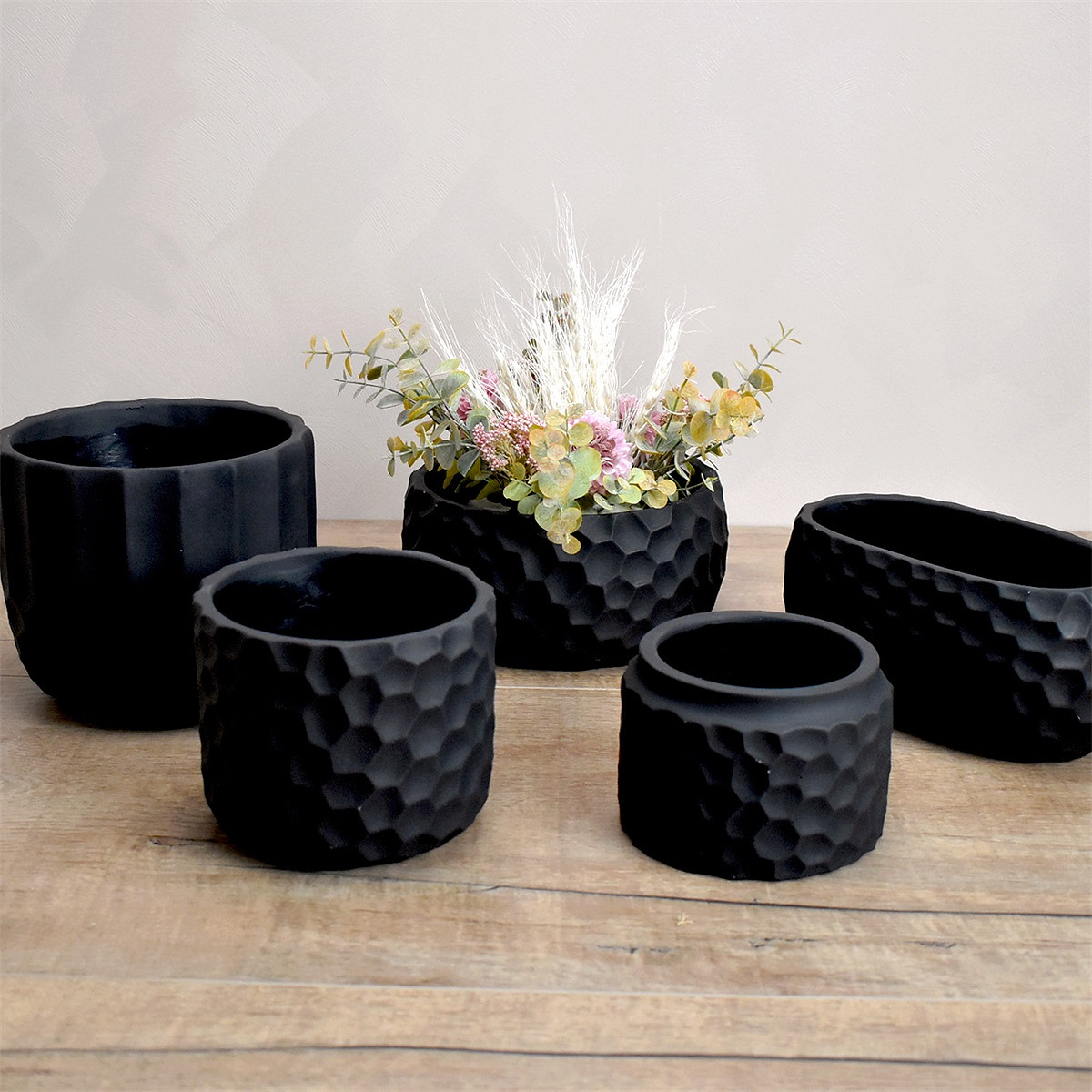 Matt-Black Cement Pot 'Honey' #1 XL