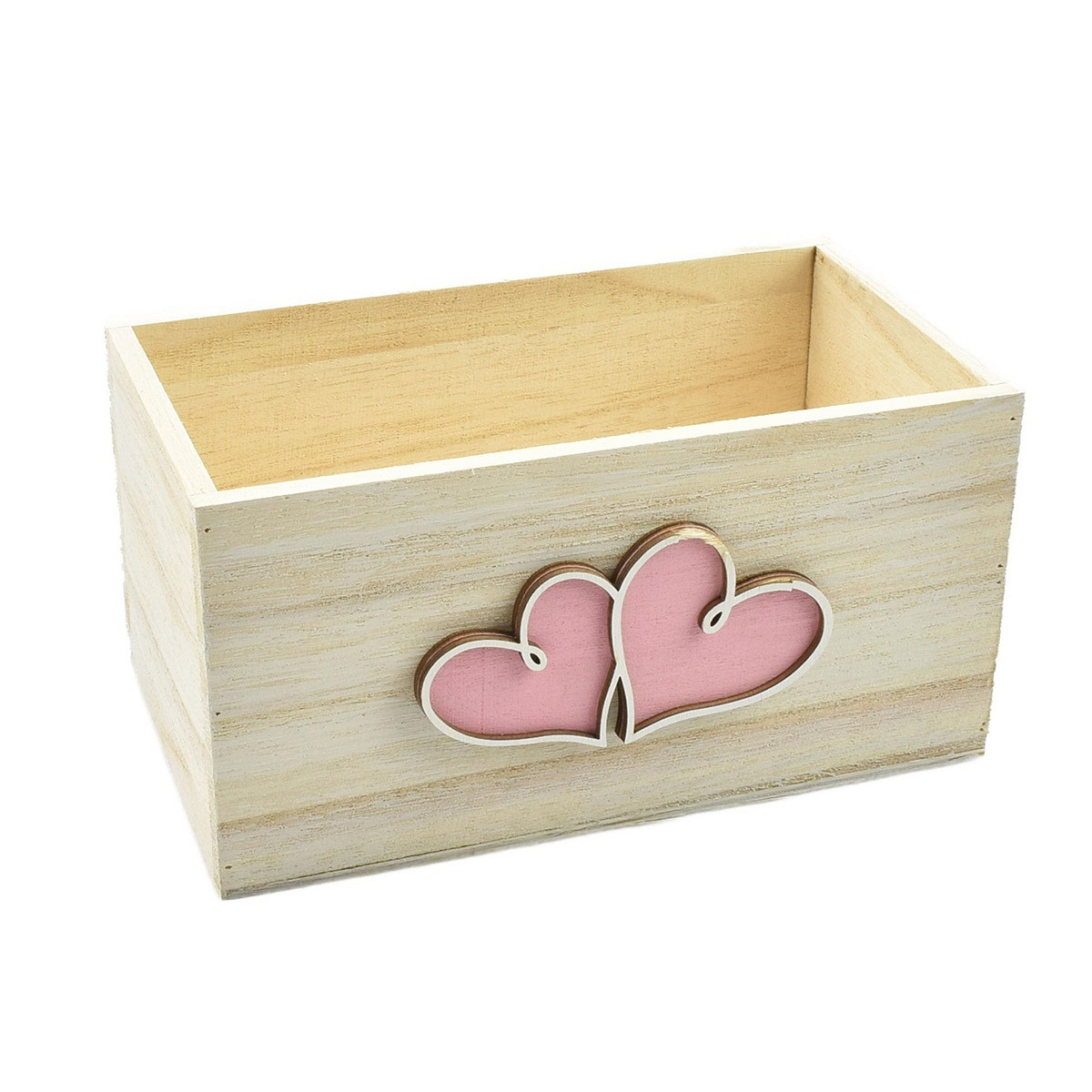 Daisy Pink Wood Heart Rect. Planter