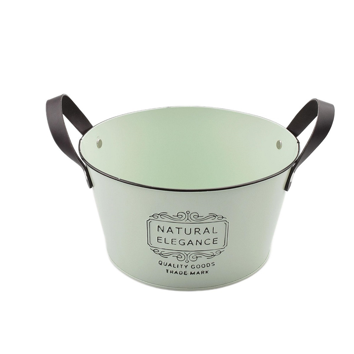 Binta Green Metal Pot w/ Leather Ears Orch9