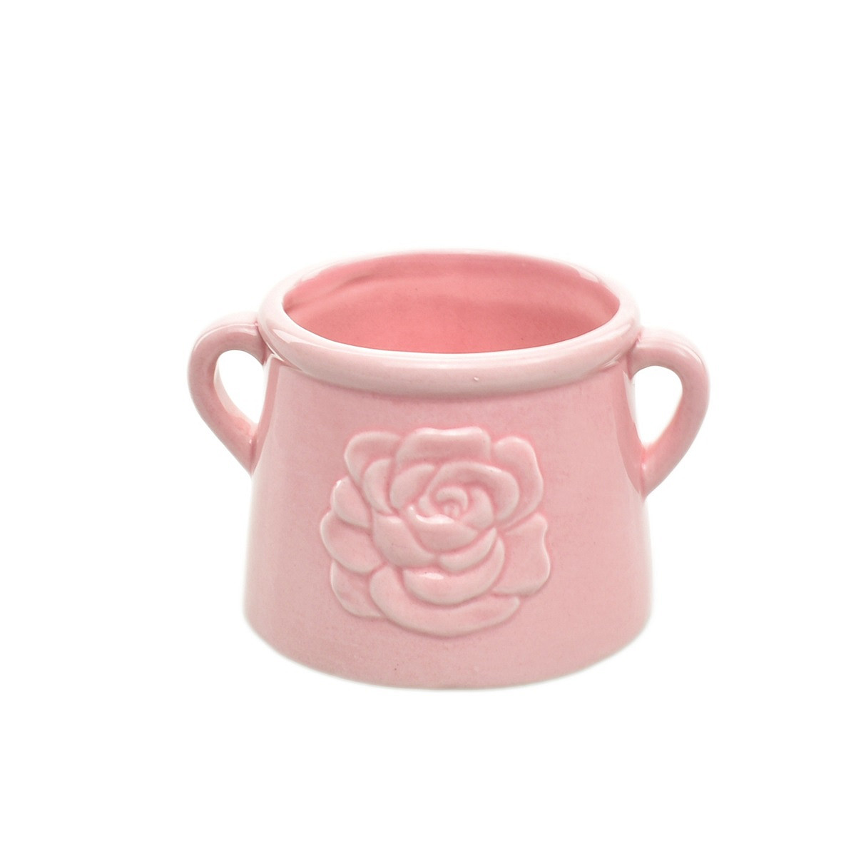 Pink Ceramic Pot w/ Two Ears 'Lovely' Orchid-12