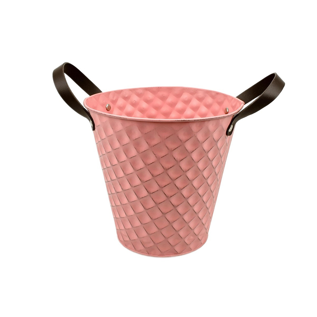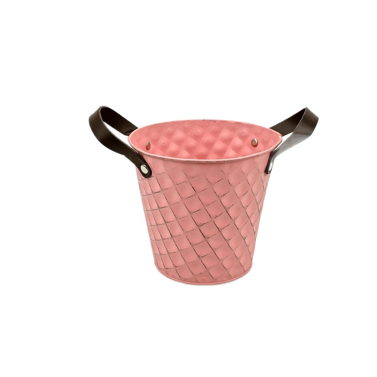 Old-Pink Zinc Pot 'Squared' w/ PU Leather Ears
