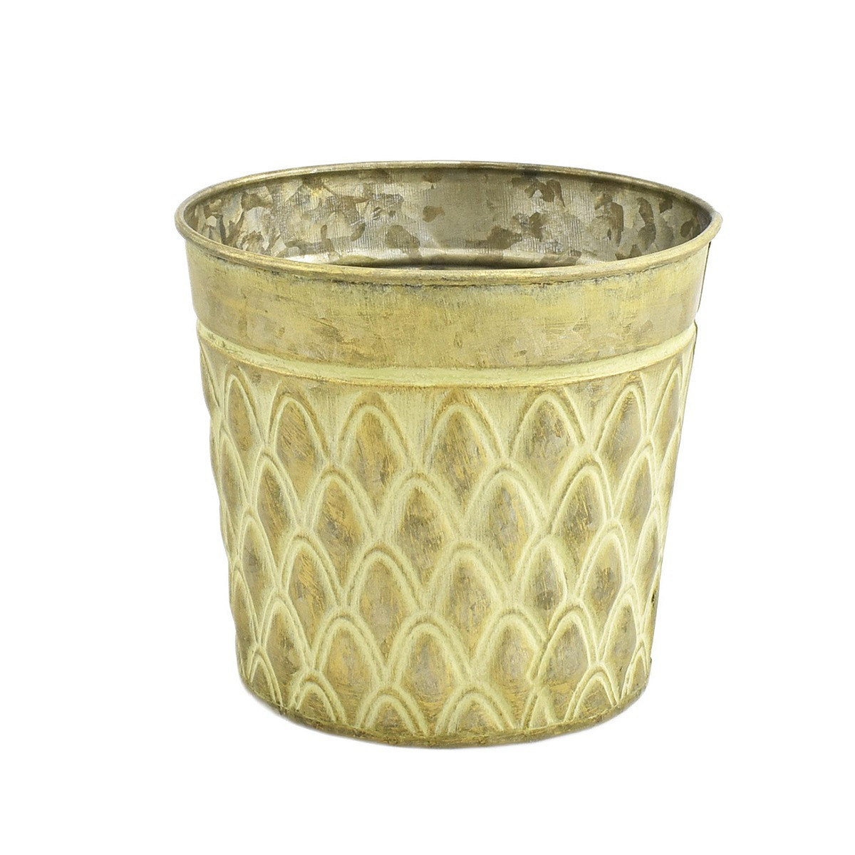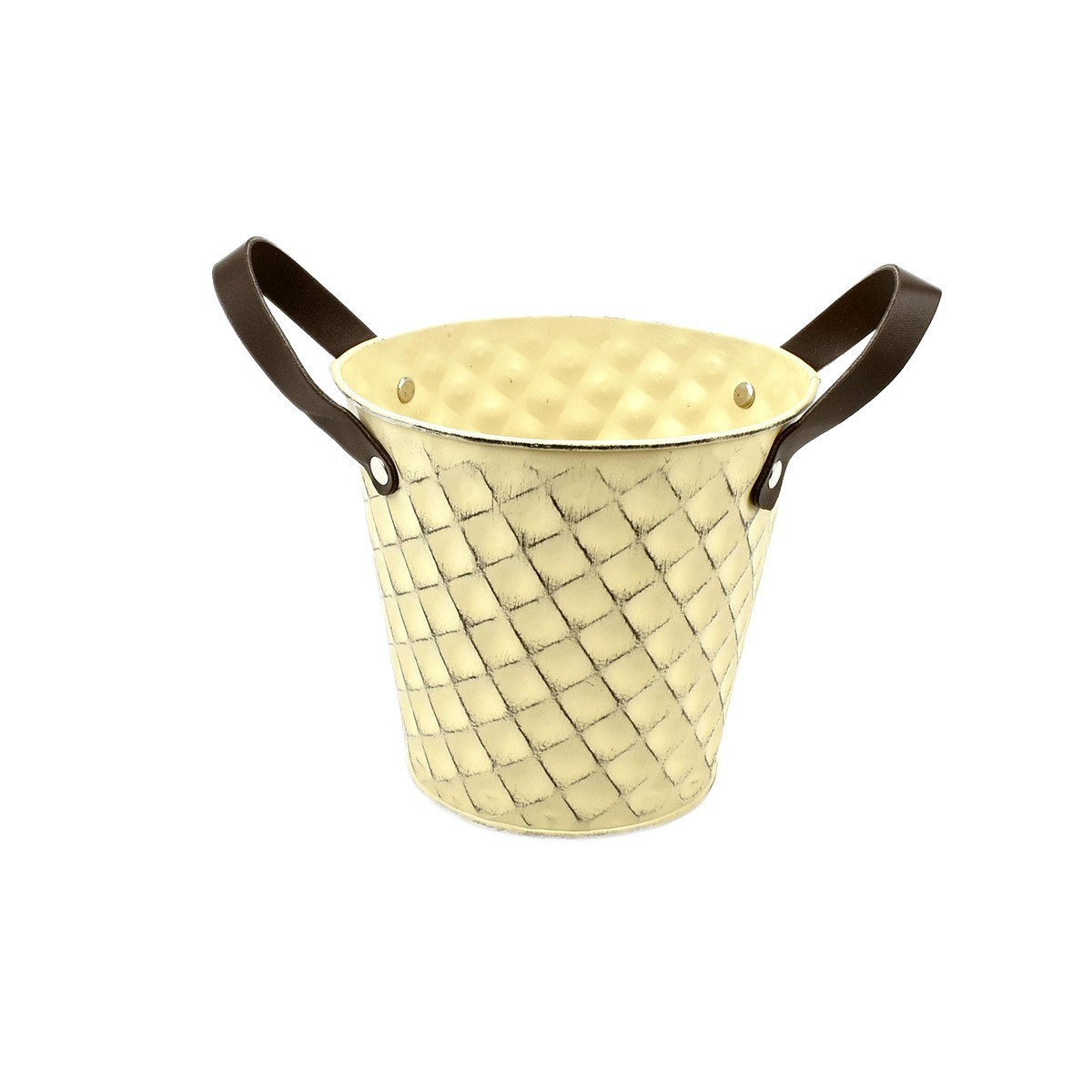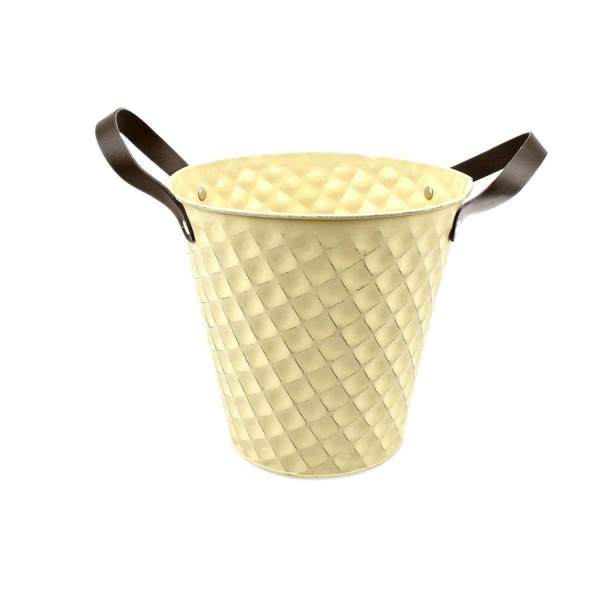 Light-Yellow Zinc Pot 'Squared' w/ PU Leather Ears