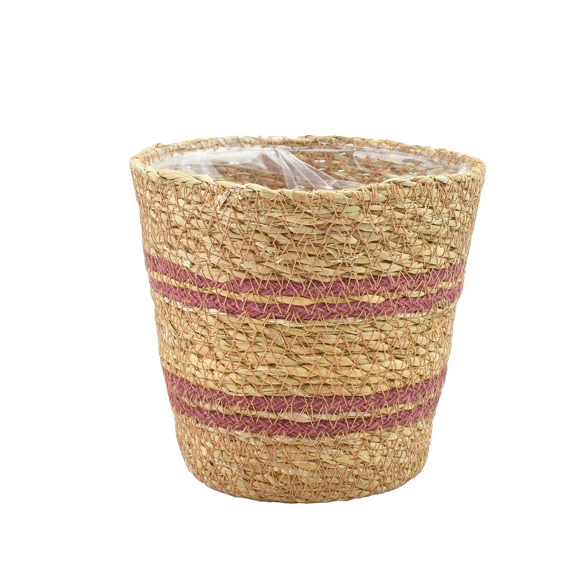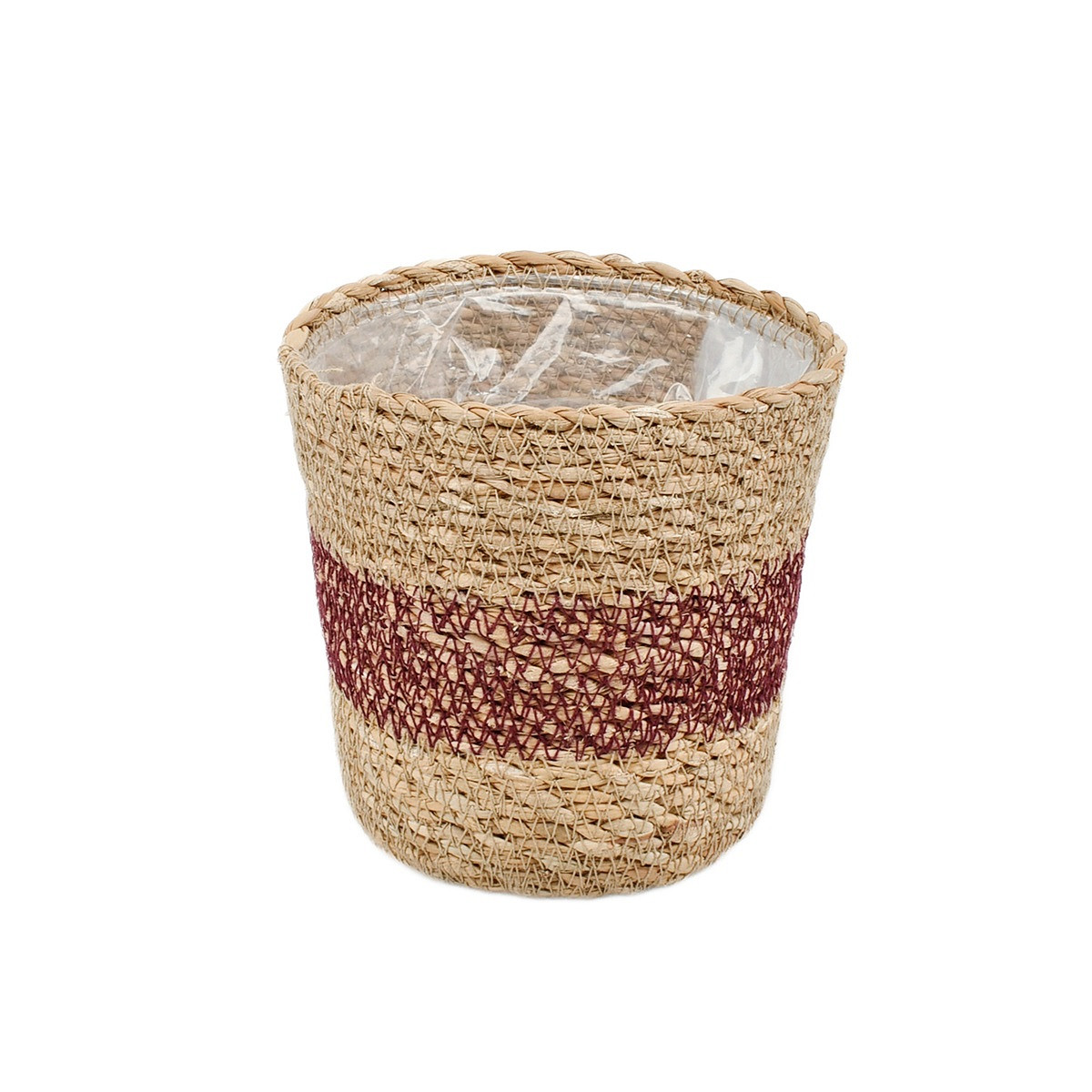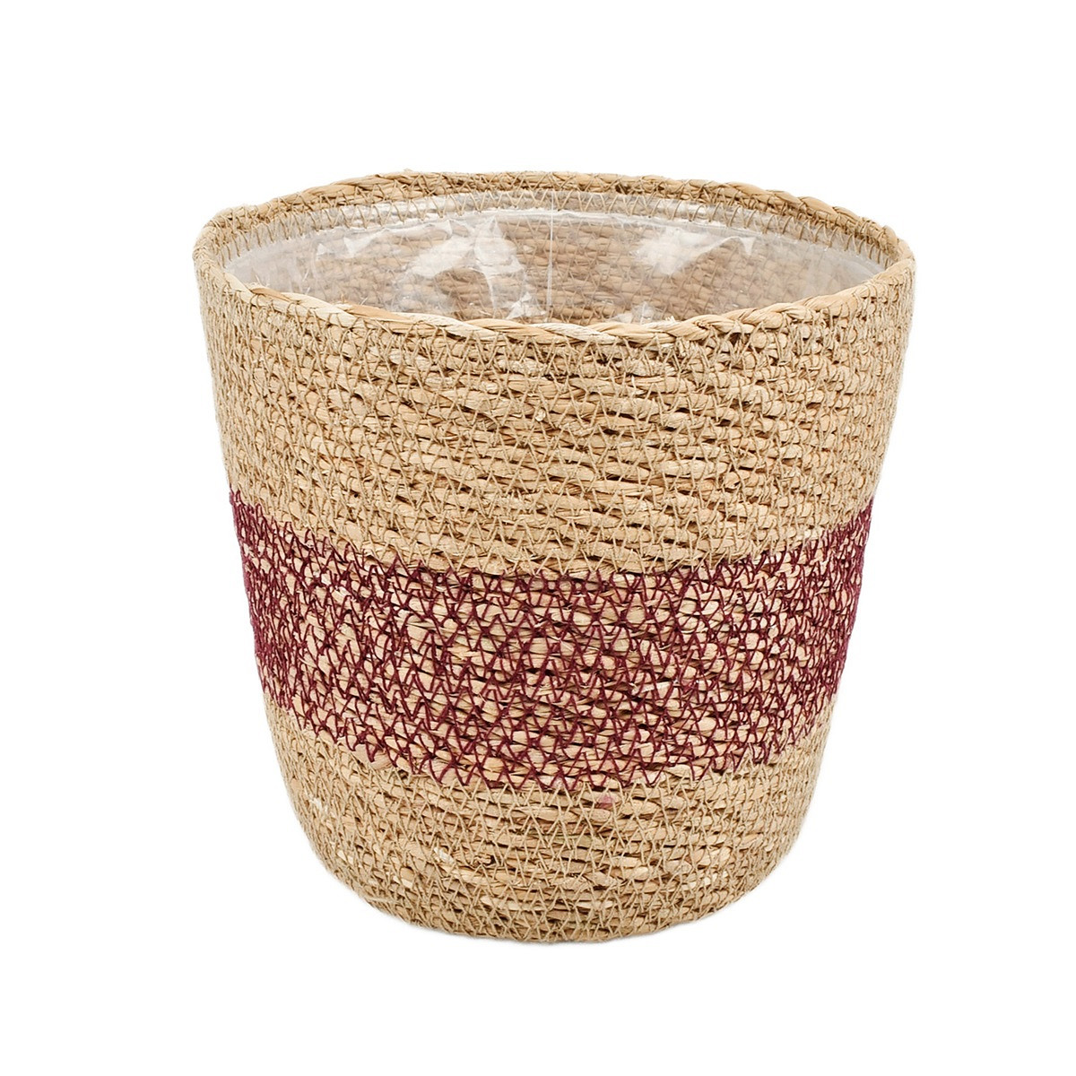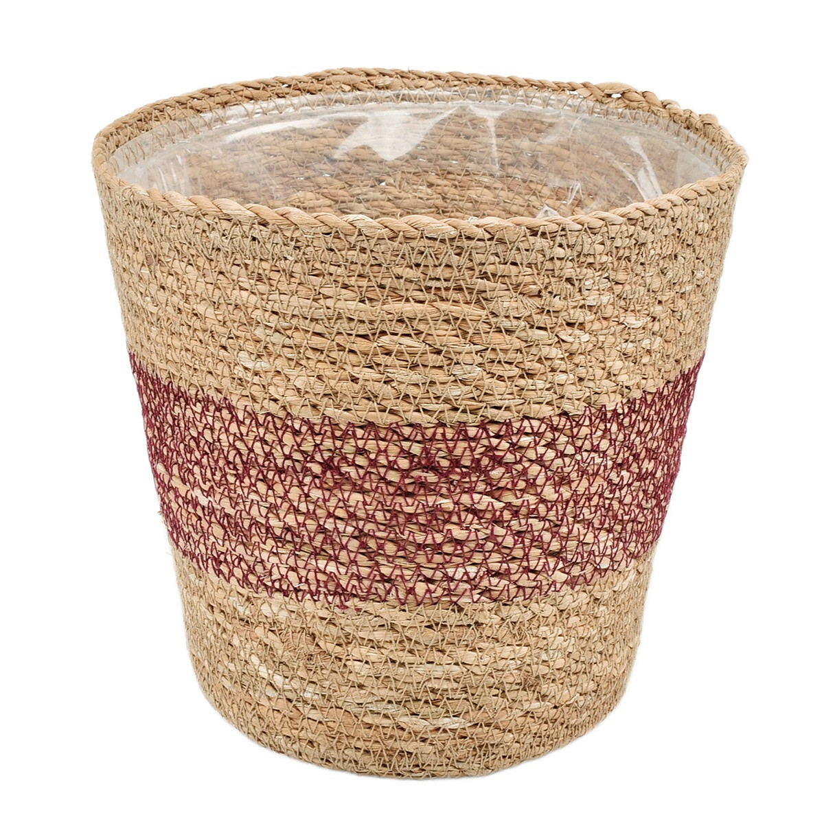 Conical Seagrass Basket w/ Jute Maroon Stripes