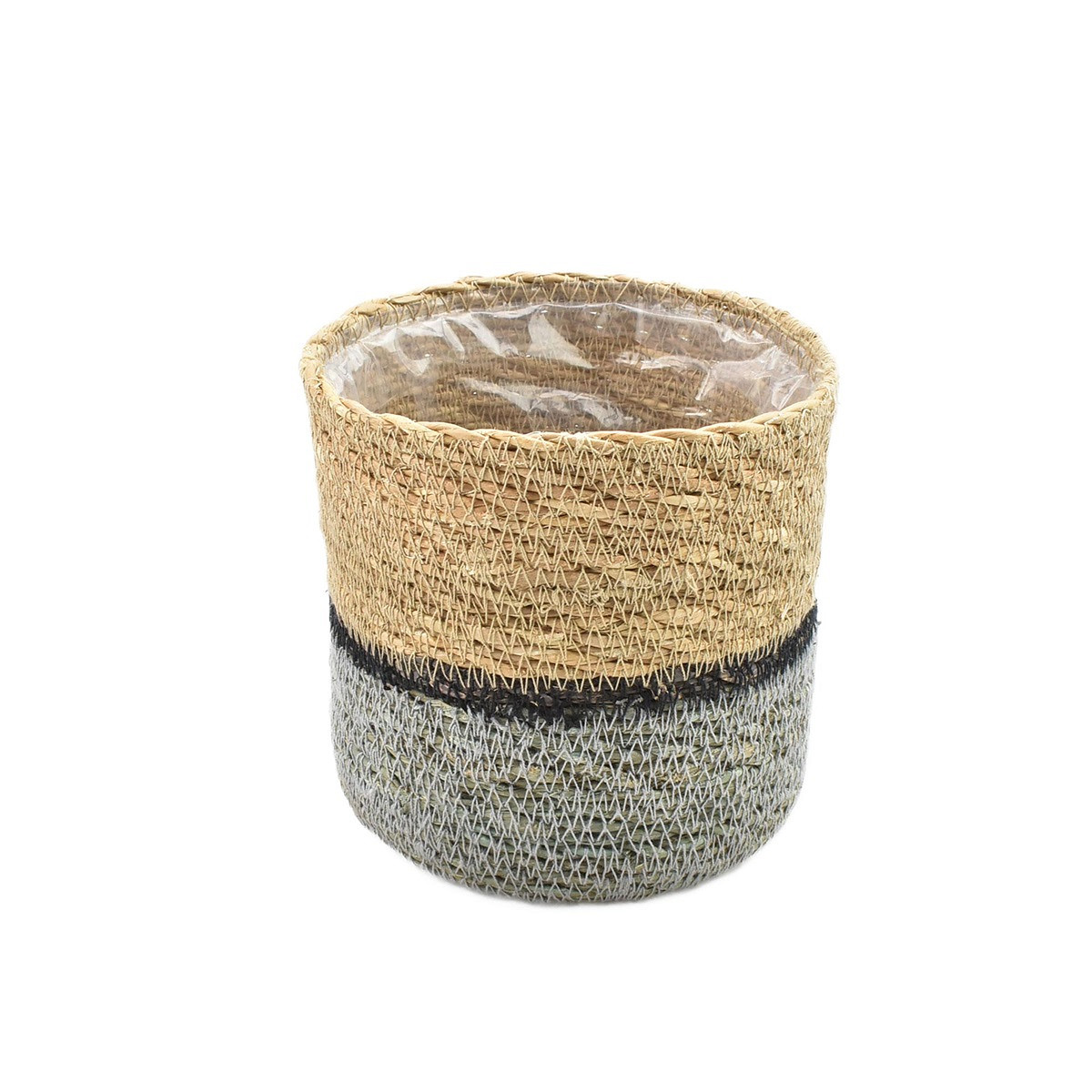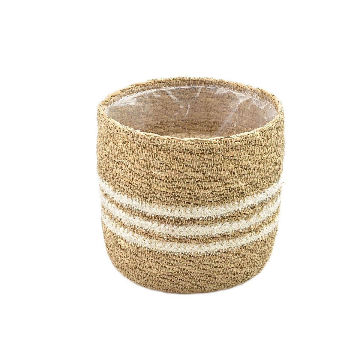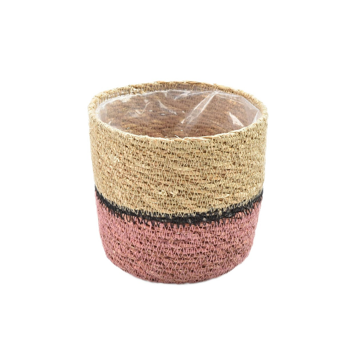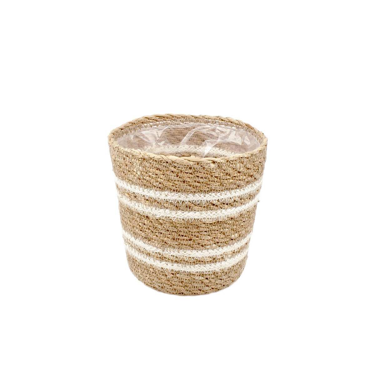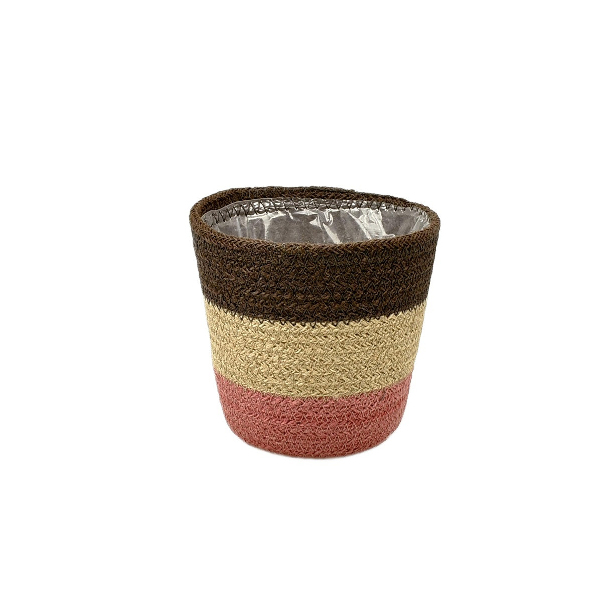 Conical Seagrass Basket w/ Jute Maroon Stripes