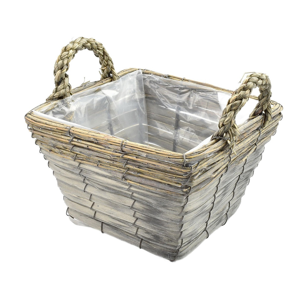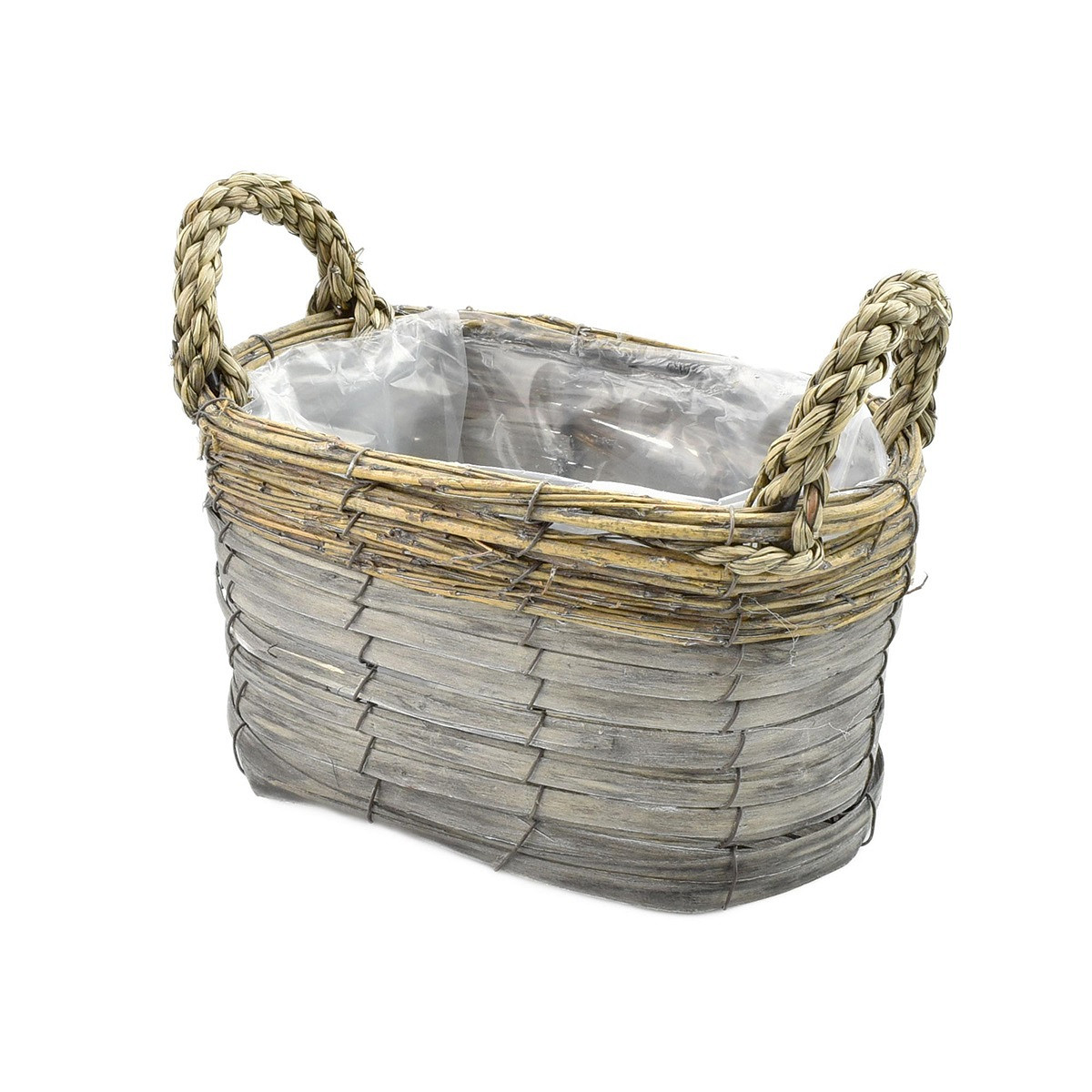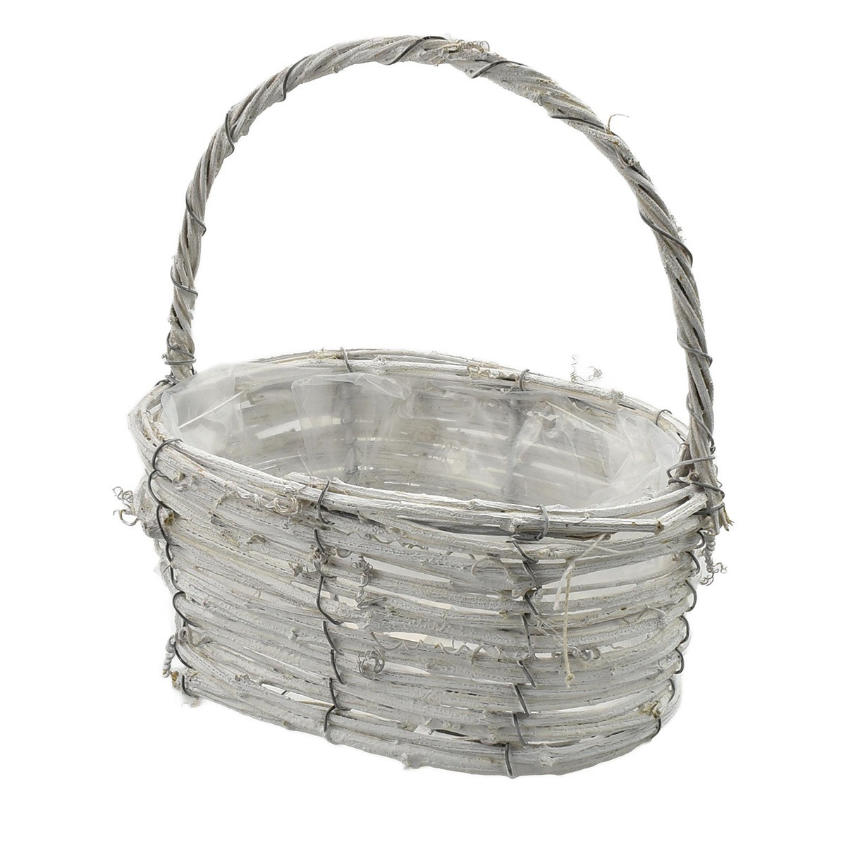 Dasa Whitewash Twig Basket Oval w/ Handle