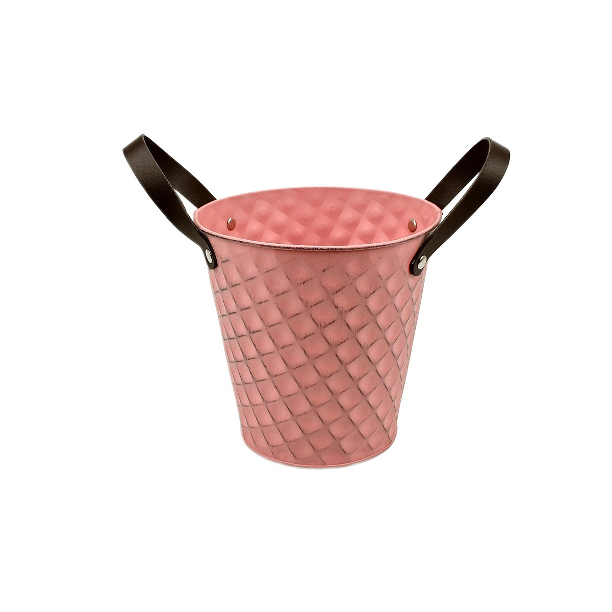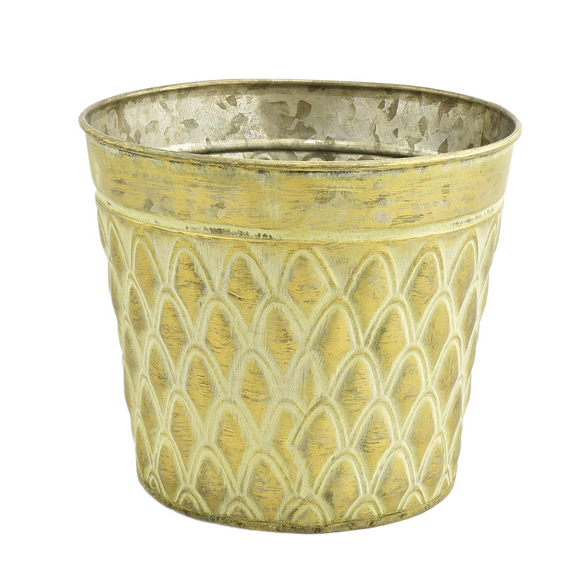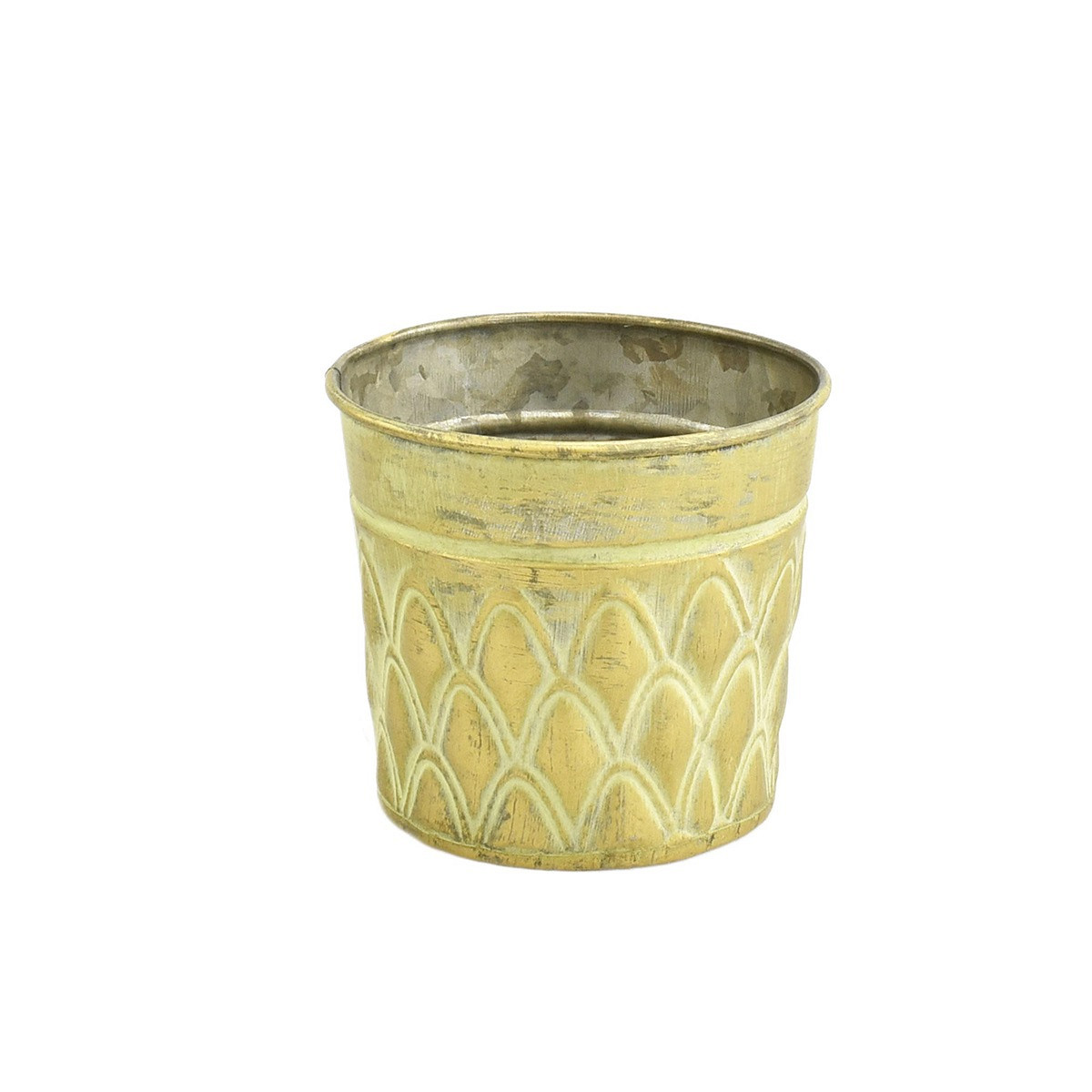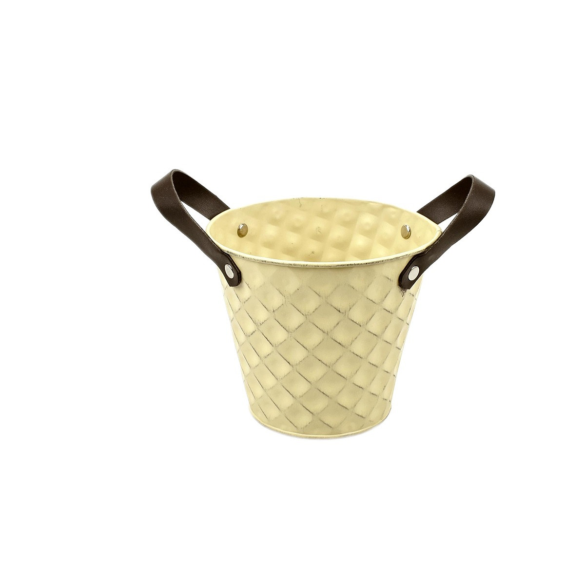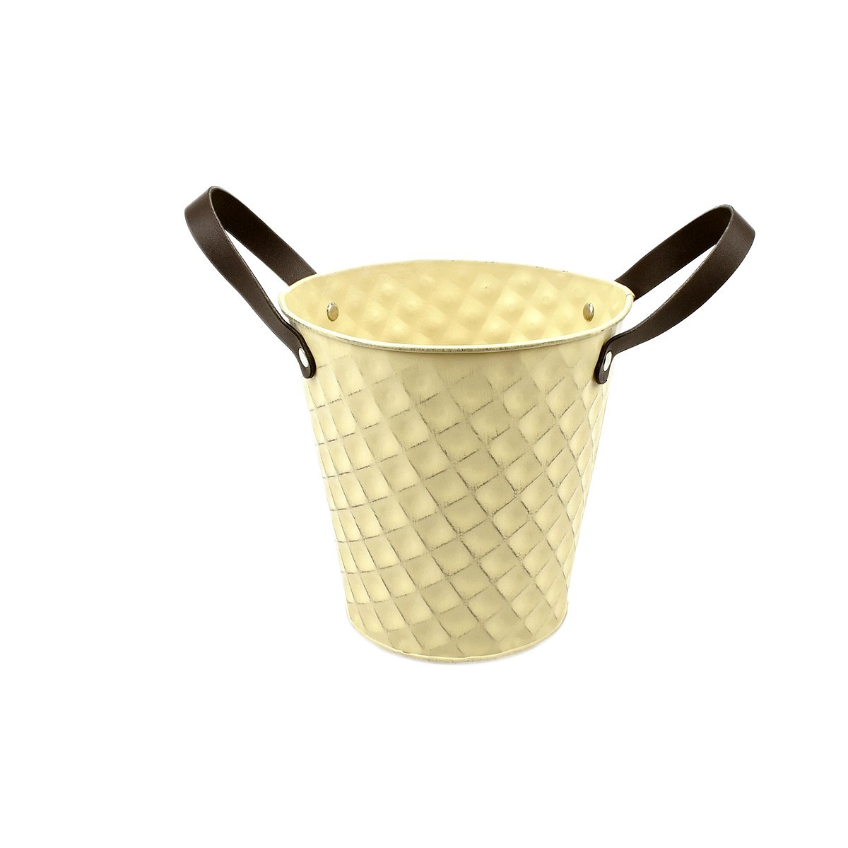 Light-Yellow Zinc Pot 'Squared' w/ PU Leather Ears