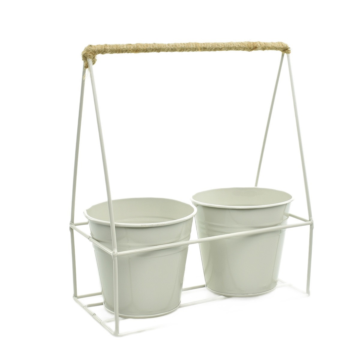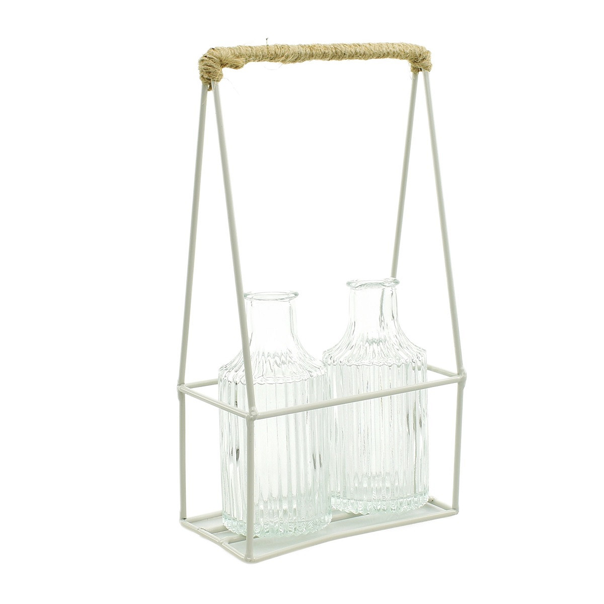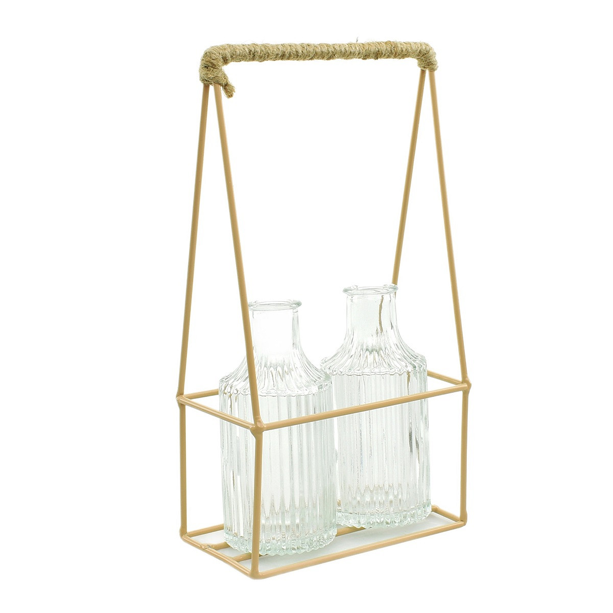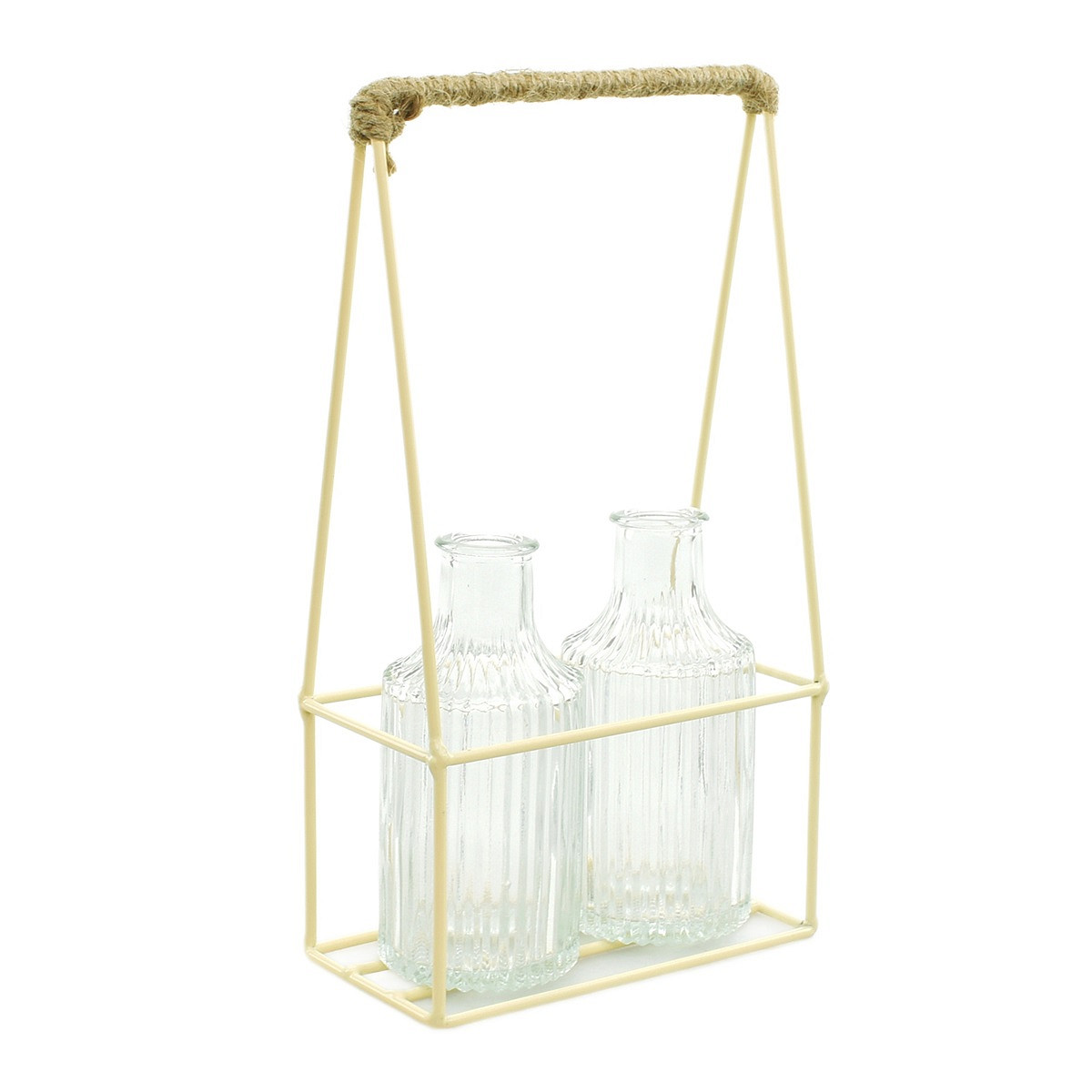 Two Bottles in Beige Metal Frame w/ Rope Handle