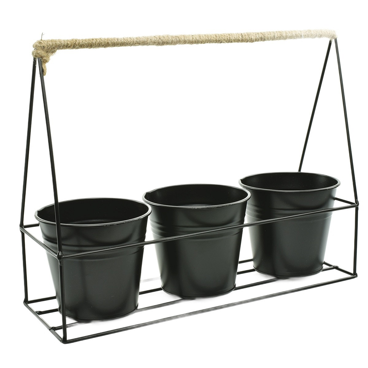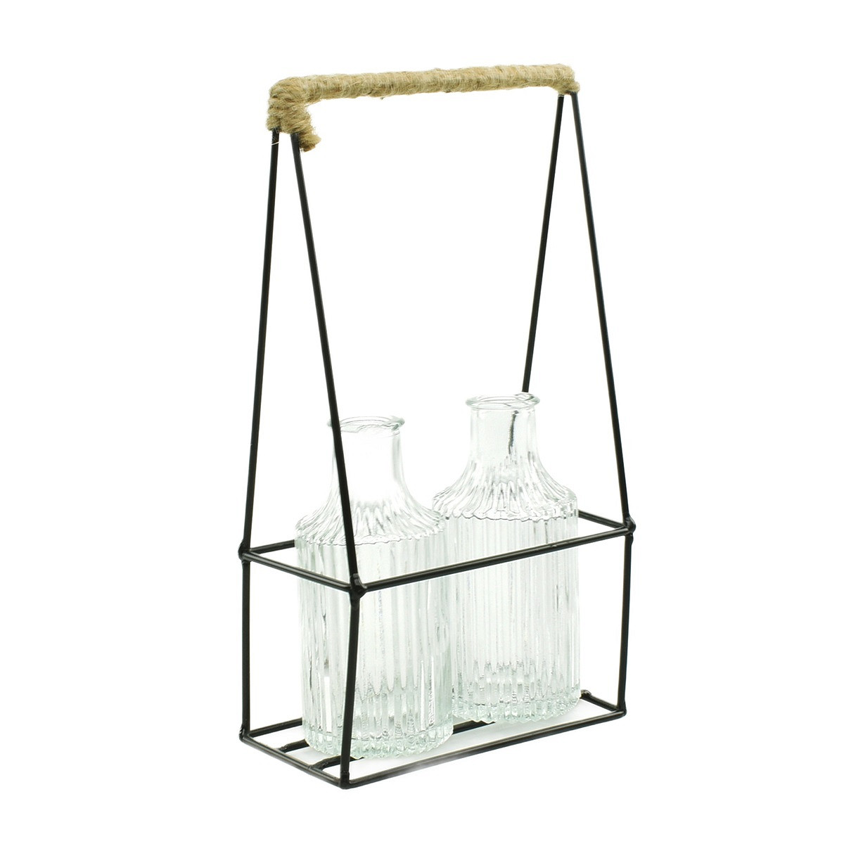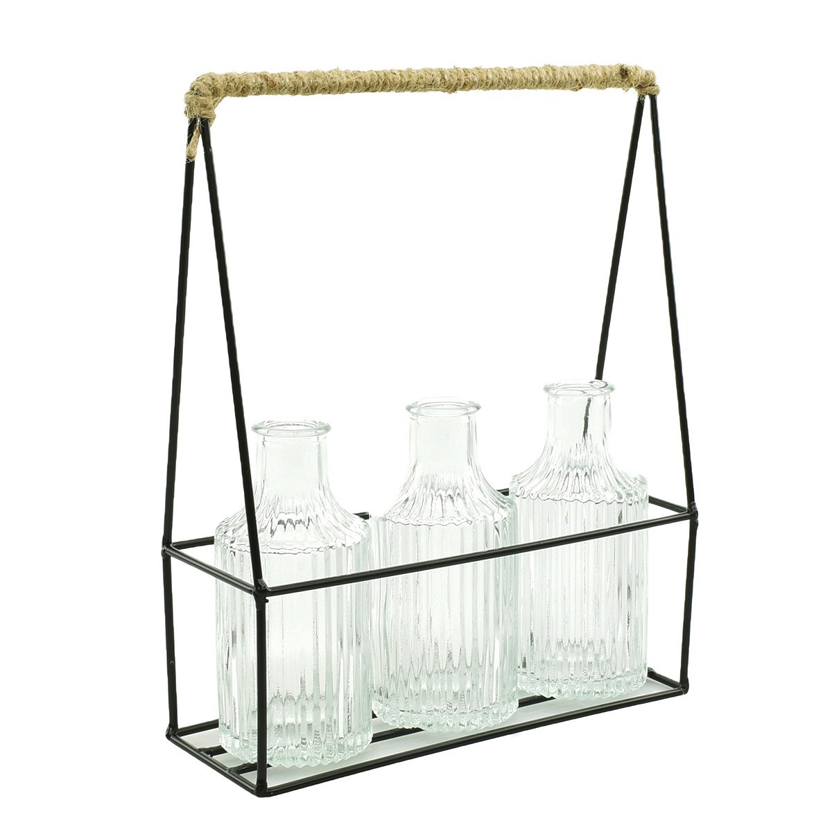 Three Bottles in Black Metal Frame w/ Rope Handle