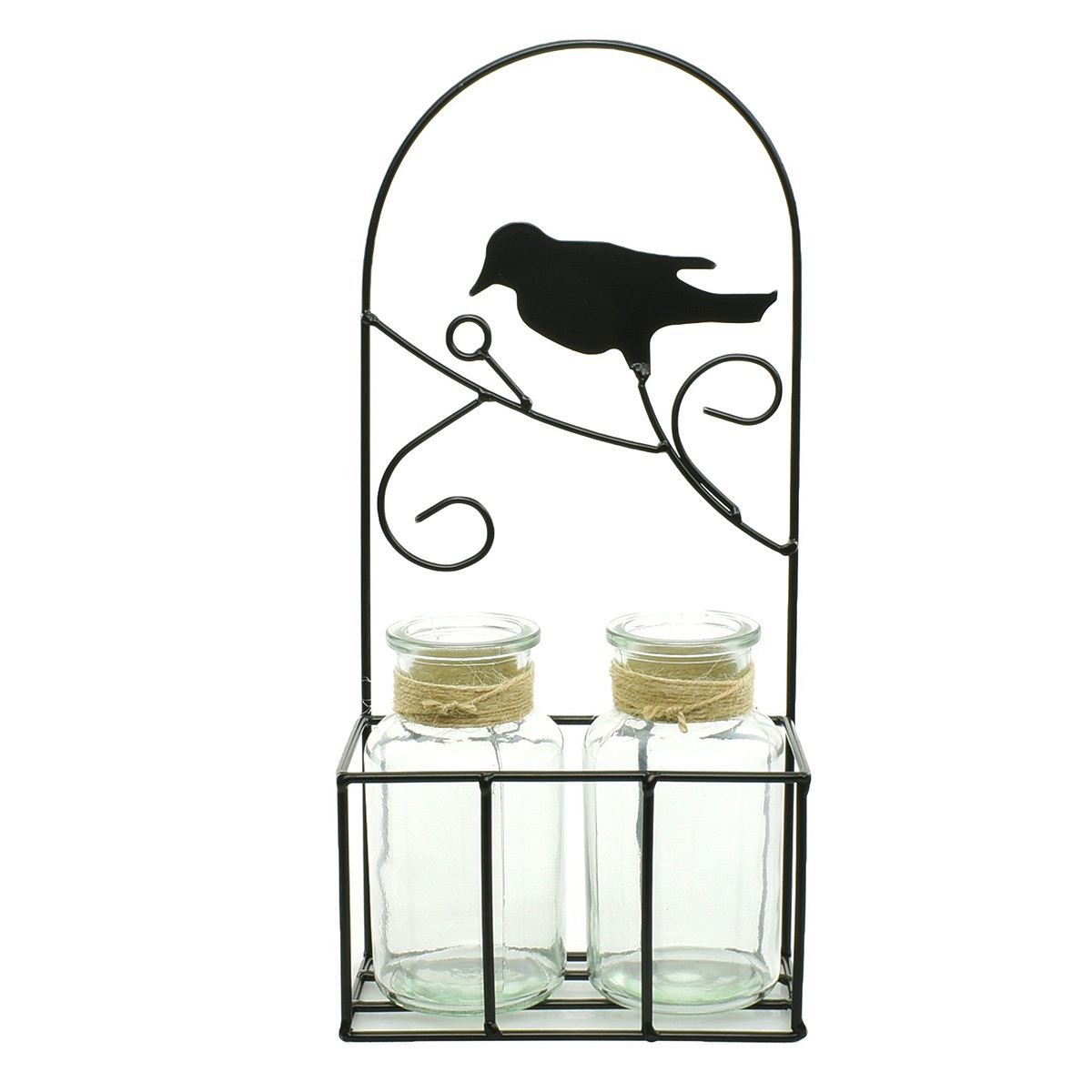Black Metal Frame 'Bird' w/ 2 Bottles