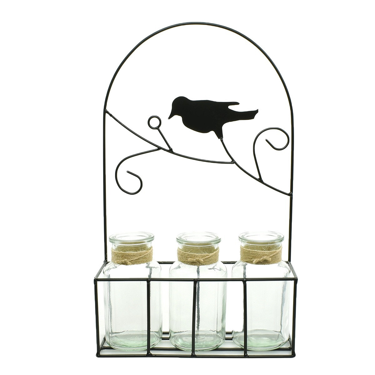 Black Metal Frame 'Bird' w/ 3 Bottles
