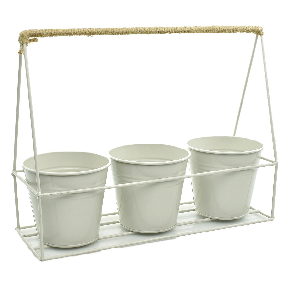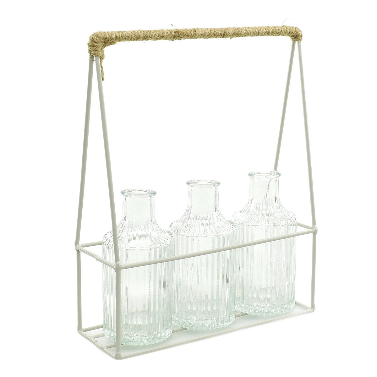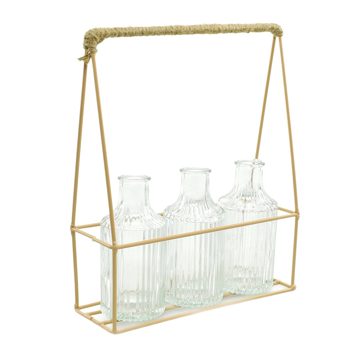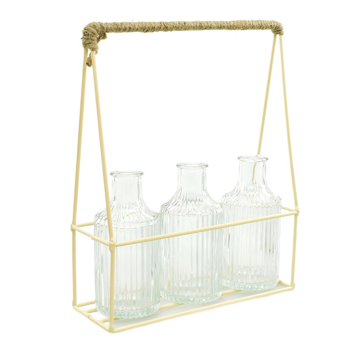 Three Bottles in Beige Metal Frame w/ Rope Handle