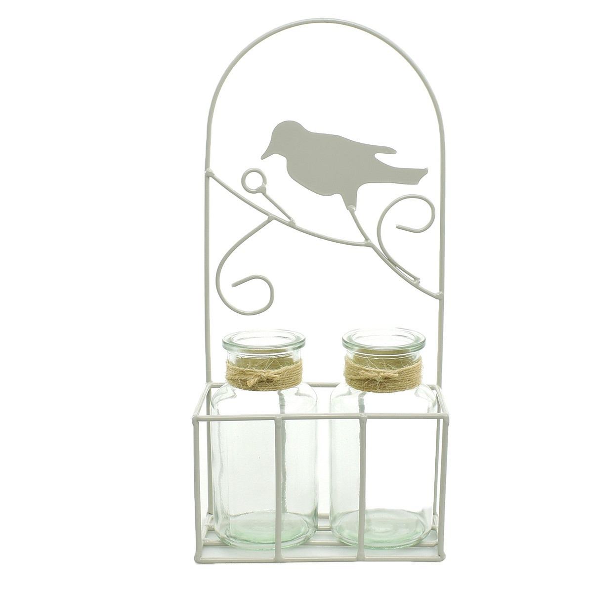Light-Grey Metal Frame 'Bird' w/ 2 Bottles